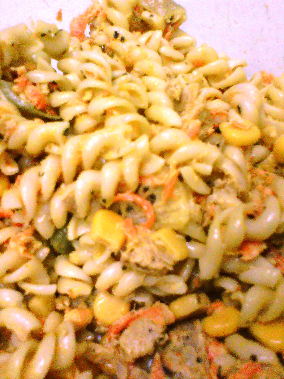 Next, the tuna, carrots and corn goes in and stir till soft.