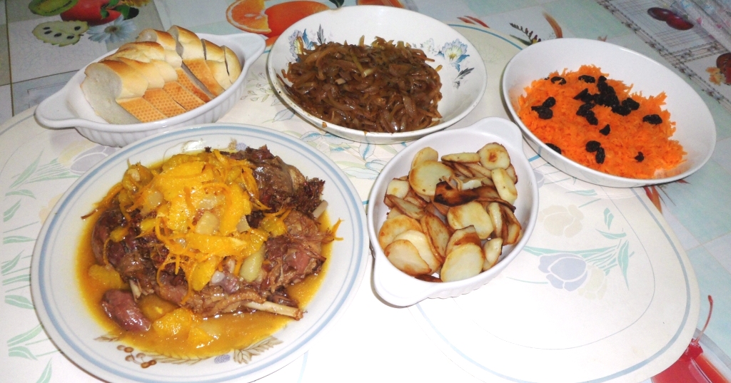 I got a little greedy and prepared 3 side dishes. Roast Potatoes, Caramelized Onion and Carrot Salad with raisins and balsamic vinaigrette dressing.