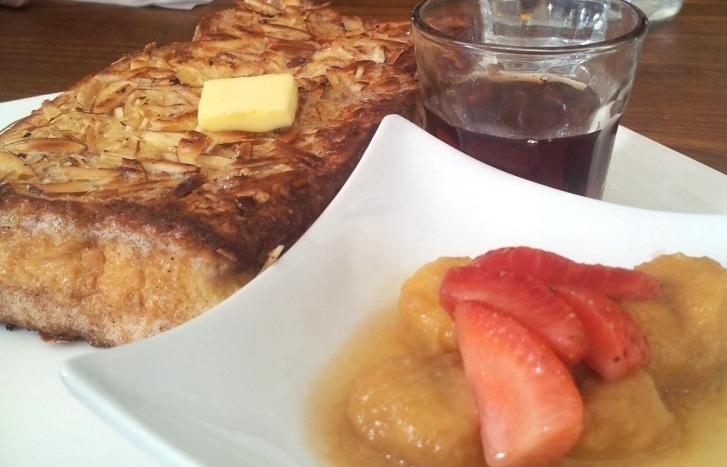 Hub and I shared the baked egg and French toast. Baked egg was a little disappointing. I had such high hopes. Le sigh…The tomato base sauce with lamb sausage was a little too overpowering in my opinion. I hardly taste the egg at all. It was like the egg took a backseat in this dish. Overall, it was not a bad dish had it not been named Baked Egg. I would have renamed it as baked lamb sausage with egg…or something along that line.