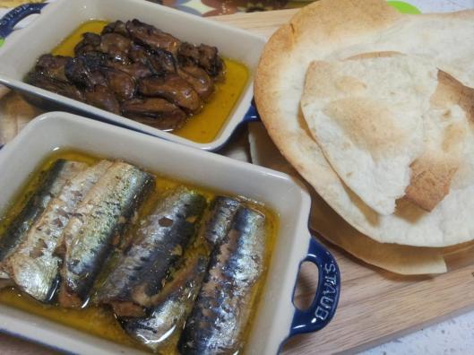 To enjoy, just break chucks of the flat bread and scoop some of the oysters / sardines onto the crispy bread. yummzz… Delicious light dinner done in under 15 mins.