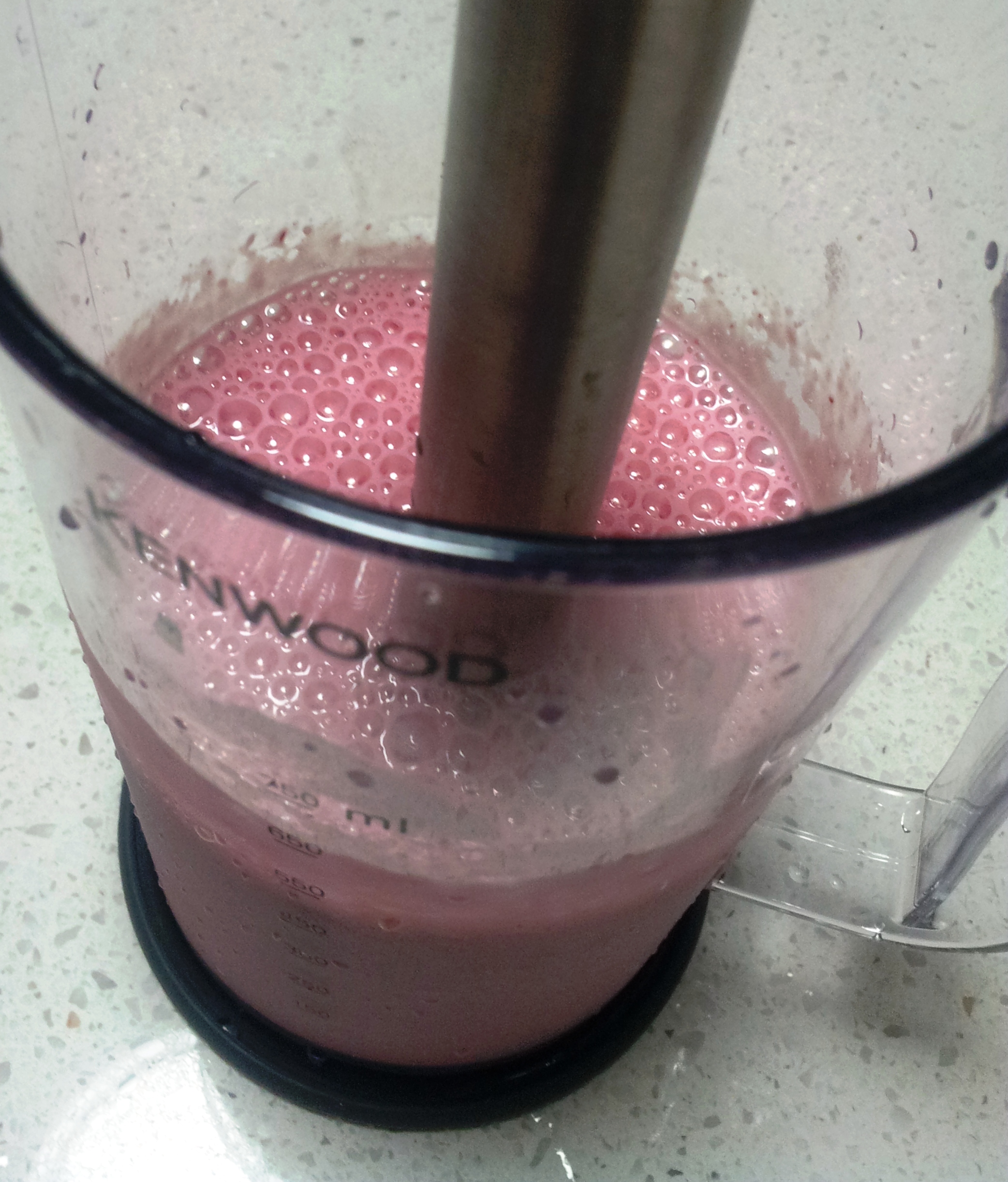 Getting ready to blendAfter 30 seconds, my milkshake is DONE. Easy, right? I love my Kenwood hand blender. So convenient!