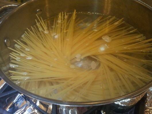 Boil the spaghetti. Remember to salt your water and drizzle with oil. Cook till slightly less than al dente. (We will need to stir fry it again later)