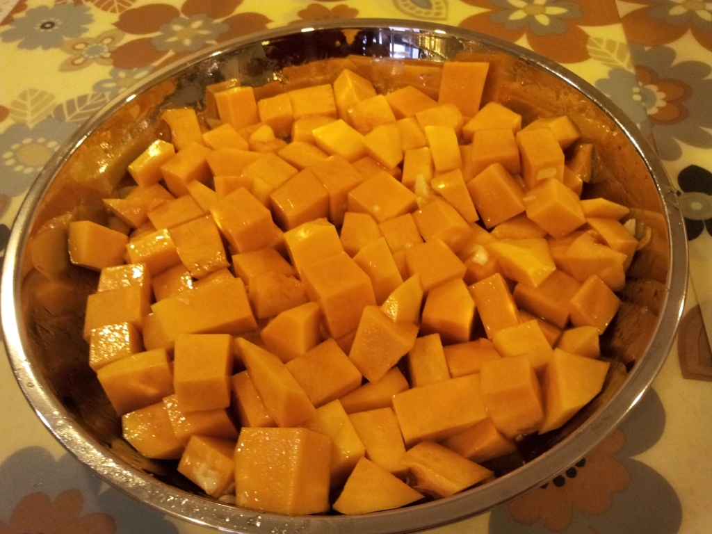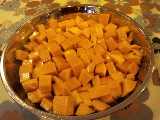 This is actually the 3rd quarter of the whole pumpkin. The 2nd quarter was use to make the same dish as the 1st quarter. (It was such a success the first round, I thought I replicate it for the second time)